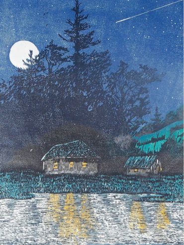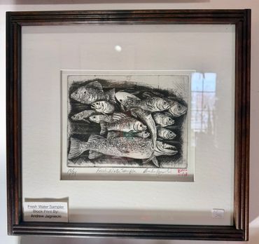 Andrew Jagniecki is a West Michigan artist residing near Onekama, Michigan, just off the picturesque route of M22 that follows the coastline of Lake Michigan. Andrew is a skilled wood carver and print maker. Andrew has participated in regional, national, and international shows including ArtPrize. Andrew has earned the BFA in Fine Art from Grand Valley State University in Allendale, Michigan. While at GVSU, Andrew studied, and worked as the assistant with well-known printmaker Takeshi Takahara. Andrew also studied in the Graduate Print Program at the University of Iowa under the direction of Mauricio Lasansky.