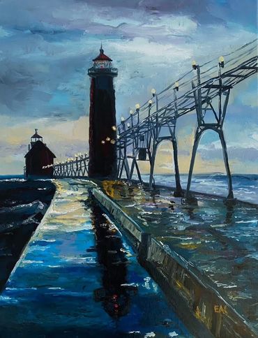 Using oil paint and impressionistic brushwork, I’m drawn to beauty and the juxtaposition to the ache of impermanence. I primarily focus on marine subjects as maritime history in Michigan has been a life long passion of mine.
